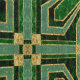 Dit behang is voorzien van een Art Deco bloemige tegel in smaragdgroen en faux goud.