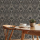 Art Deco Bloemen Veer Taupe & Houtskool Behang