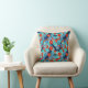 Art Deco-bloempatroon - blauw, turkooizen en rood Kussen