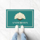 Art Deco Cream Flower Blossom Crest & Blauwgroen Deurmat