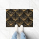 This doormat has an Art Deco design of diamonds and triangles in gold on a field of black.