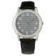 Dit mannen horloge heeft een kunstdecoontwerp van overlappende diamanten in zwart op een gebied van wit.