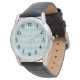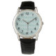 Dit mannen horloge heeft een kunstdecoontwerp van overlappende diamanten in verditer (groen) en blauw op een gebied van wit.