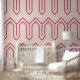 Art Deco Patroon 05 - Frambozenroze op lichtroze Behang
