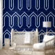 Art Deco Patroon 05 - Lavendel Blauw op Donkerblau Behang