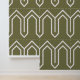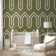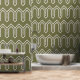 Art Deco Patroon 05 - Wit op Camouflage Groen Behang