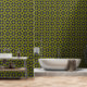 Dit unieke behang heeft een klassiek Art Deco patroon in olijf en zwart. Een geometrisch ontwerp dat is nagemaakt door Alma Wad, het voegt een vleugje elegantie en verfijning toe aan elke kamer, waardoor het een perfecte keuze is voor degenen die een tijdloze stijl en ingewikkelde artistieke stijl waarderen.