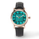 Art Deco, turquoise / pauw blauw-groen horlogegezicht met zwarte cijfers - digitale graphics