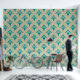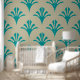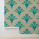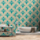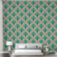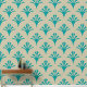 Art Deco Pattern 02 - Blauwgroen op Gebroken Wit Behang