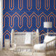 Art Deco Pattern 05 - Sinaasappel op Pruisisch Bla Behang