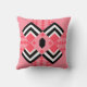 Deze gooiende kussen hebben een kunstdeco-quilt-geïnspireerd ontwerp van diamantvormen in zwart, wit en roze op een gebied van watermeloen.