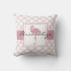 Dit ontwerp kenmerkt een flamingo in de stijl van het Deco van de Kunst. Het prachtige tropische vogelontwerp met een roze en wit golfpatroon maakt een modern en uniek werpkussens met gepersonaliseerde tekst.