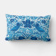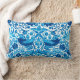 Lumbarkussen in een William Morris, Art Nouveau tapestry patroon met de titel "The Strawberry Thief", van gestileerde vogels, bloemen, aardbeien en bladeren, digitaal versterkt en gekleurd in tinten van indigo turquoise en kobalt blue, op een witte achtergrond