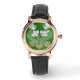 Prachtige, , kunstdeco, dameshorloge met een groen en wit waterlicht bloemontwerp.