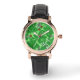 Art Nouveau Strawberries en Leaves, Lime Green Horloge