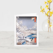De overspannen bruggen waren ongebruikelijk in Edo, maar nieuwsgieriger was een steenbrug, die weinig voordelen in een naar voren gebogen stad aan aardbevingen aanbood. De rond gemaakte vormen en de steenstructuren waren gemeenschappelijker in China dan in Japan, die een Chinees prototype voor deze brug voorstellen, hoewel het in 1740s door een wandelende die priester wordt gezegd ontworpen te zijn door gelijkaardige in Kyushu, Japan wordt geïnspireerd. Hiroshige roept een grotere betekenis van isolatie, zelfs eenzaamheid, in deze sneeuwscène door een schuin uitzicht op aan te bieden. Van de reeks Honderd Beroemde Uitzichten van Edo.