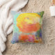 Dit kussen heeft aan elke kant hetzelfde artistieke gemengde media-ontwerp met een Ranonculus bloem en andere bloemen op een digitaal geschilderde aquarel achtergrond. Ik werkte met penselen uit het publieke domein: Splatter_brushez_by_Snowiee / www.brusheezy.com. De kleuren zijn oranje, geel, turquoise, blauw, roze en paarse.