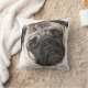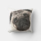 Bill the Pug's gezicht voor je kamer in een plush artistiek portret met een tele aardtoon aan de achterkant