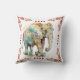 Pillow met een schilderij van een olifant in Indische stijl met krullende ornamenten.