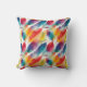 Dit kleurrijke gooi kussen heeft een artsy patroon met regenboog waterverf rood, geel, blauw, sinaasappel en turquoise veren op een witte achtergrond. Cool om vreugde te brengen in een kamer of als cadeau voor een viering van Native American Heritage.