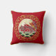Asian Bird Art over Deep Red Background Pillow Kussen