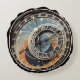 foto ' s in zwart , blauw en oranje van een historisch middeleeuws landteken van een oude astronomische klok in praag in europa met astrologische tekens en romancijfers .