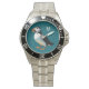 Geniet van de charme van de Atlantische papegaaiduiker met dit elegante horloge. Met een afbeelding van de schattige zeevogel tegen een oceaanblauwe achtergrond, is dit uurwerk ideaal voor iedereen die op zoek is naar een stijlvol, op natuur geïnspireerd ontwerp. De wijzerplaat kan worden gepersonaliseerd met uw initiaal als een monogram, waardoor een aangepast onderdeel aan dit opvallende accessoire wordt toegevoegd. Dit horloge biedt zowel stijl als functionaliteit en is een uitstekende keuze voor alledaagse draag en een ideaal cadeau voor natuurliefhebbers.
