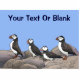 Puffins rust op de stenen. Voeg je eigen tekst toe. De Atlantische Puffin (Fratercula arctica) voedt zich voornamelijk door in het water te duiken. Zij fokken zich in grote kolonies op kustkliffen of offshore-eilanden in de Noord-Atlantische Oceaan. Puffins gooien de kleurrijke buitenste delen van hun rekeningen af na het broedseizoen, waarbij een kleiner en duller snavel achterblijft. Hun korte vleugels zijn aangepast voor zwemmen met een vliegtechniek onder water. In de lucht sloegen ze hun vleugels snel (tot 400 keer per minuut) in een snelle vlucht, die vaak laag over het oppervlak van de oceaan vliegt.