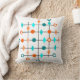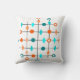 Deze gooiende kussen hebben een modern, midden-eeuwse vormgeving van een raster in zwarte lijnen met oranje en blauwgroen cirkels en diamanten.