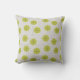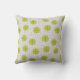Dit kussen heeft een modern ontwerp uit het midden van de eeuw van geelbruine bogen die zich herhalen op wit als achtergrond met herhalende groen-gouden cirkels met donkerdere groen-gouden sterrenuitbarstingen in hen.