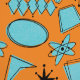 Leuke MCM atomaire vormen in turquoise en zwart op sinaasappel