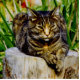 Een gestreept tafelkat op een stoom in het hoge gras maakt een schattige foto door de zeer feliene omvang in elke centimeter van zijn kleine lichaam. Ik ben kat. Je moet gehoorzamen!