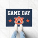 Deze pittige deurmat toont trots ondersteuning voor Auburn University direct bij uw ingang! Het beschikt over de iconische Auburn "AU" logo prominent weergegeven in zijn traditionele oranje en blauw, gecentreerd op een gedurfde marineblauwe achtergrond. Boven en onder de logo worden de woorden "GAME" en "DAY" stoutmoedig gepresenteerd in witte, blokletters, die perfect de opwinding van de speeldag vastleggen. Twee levendige oranje sterren flankeren de 'AU'-logo en dragen bij aan het energieke display. Dit impactvolle en herkenbare ontwerp is ideaal voor het verwelkomen van collega-fans of gewoon om je trouw te tonen aan de Auburn Tigers.