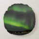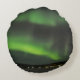 Ronde gooiend kussens met groene stralen van aurora borealis (noordelijke lichten) in de nachtelijke hemel boven een bevroren meer in Lapland.