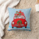 Australische herderhond in auto met kerstman kussen