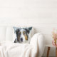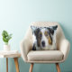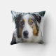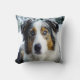 Een mooie Australische Shepard-hond in de wintersneeuw op deze prachtige gooiende kussen.