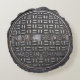 Authentieke New York City NYC Sewer Hoesje Round Sierkussen is een stuk comfortabeler dan het lijkt! Het beschikt over een foto van een authentieke grote oude lompe, vuile, smerige, roestige, MADE IN CHINA, mangatdekking van de Big Apple! Je hoeft niet in Gotham te wonen of te werken om dit oude relikwie van ieders favoriete grote stad te waarderen! Cool cadeau voor iemand die van de plek houdt! (Foto door Dave Buchwald, gewijzigd door T. Wuthrich)