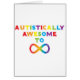 Design gemaakt met liefde voor Autisme Bewustzijn. Regenboogletters vormen de zin 'Autistisch Geweldig Tot In De Oneindigheid' met een oneindigheidssymbool.