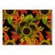 Handgetrokken bouquet zonnebloemen, herfstbladeren bosbessen en bramen en kevers