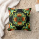 Dit prachtige 20 "x20" vierkante kussen is voorzien van een origineel digitaal schilderij van zeer gestileerde chrysanten en tulpen, in de rijke en gedurfde kleuren van de aarde door kunstenaar, Leslie Sigal Javorek, geïnspireerd door de "Arts and Crafts Movement" van de late jaren 1800.