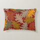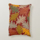 Dit ontwerp biedt een aantrekkelijk patroon van eikenbladeren in rijke herfstschaduwen van goud, rood, geel, geelbruin, groen en bruin op een diep verbrande rode achtergrond.