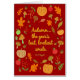 Decoratief seizoensgebonden ontwerp met bladeren, pompoenen, zuren, appelen, bessen en paddenstoelen. W.C. Bryant.