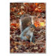 Wenskaart met een sluiting van een schattige eekhoorn die zich in een hoop herfstbladeren voor de camera vormt. Geweldig geschenk voor een natuur minnaar! Digitale fotografie van Sue Melvin