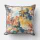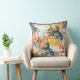 Heerlijk kussen met een Aziatisch landschap met pagode op de achtergrond. Blauwe tinten van marine, sinaasappel, geel in zachte waterverf.