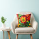 Aziatische bloemen in helder rood en groen kussen