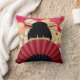 De dunne kussen worden getoond met een mooie herfstherfstherfstblad-afdruk met een Aziatische dame die zich achter een ventilator verschuilt, samen met een enkele orchidee die voor de lol is ingehaald. Kleur frambozen, blikken, duik en zwart. Pas deze kussen aan of koop zoals het is.