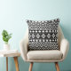 Een Aztec-stijlontwerp in een digitaal en vectorpatroon met wit detail op een zwarte achtergrond.