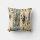 Azteekse inheemse Amerikaanse waterverf tribale ontwerp van 3 kleuren geblokkeerde veren en medicijnstok op blauw en woestijnzand achtergrond.