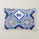 Azulejo Spanish Pattern Tiles Navy White Monogram Accent Kussen