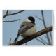 Black Capped Chickadee Kaart. Deze harde kleine vogels in hun dikke winterjassen van gras en zwart lijken ondoordacht voor de koude wintertemperaturen.
